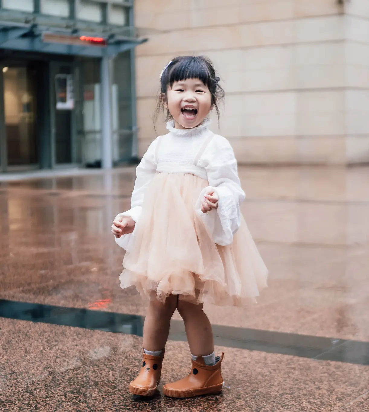 Jumping in puddles in invevitable. New England is notorious for mud and melting ice and it calls out to kids. Come jump in this puddle and make sure to splash mama!
