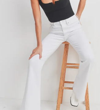 Lengthen your legs with a bell and wedge this summer. A cable sweater on the spring days or a tank top in the summer. The perfect hang out pant or dress up pant for this summer! 11" Rise, 32.5" Inseam, 12" Opening White Denim - High Rise Clean Bell Bottom Jean