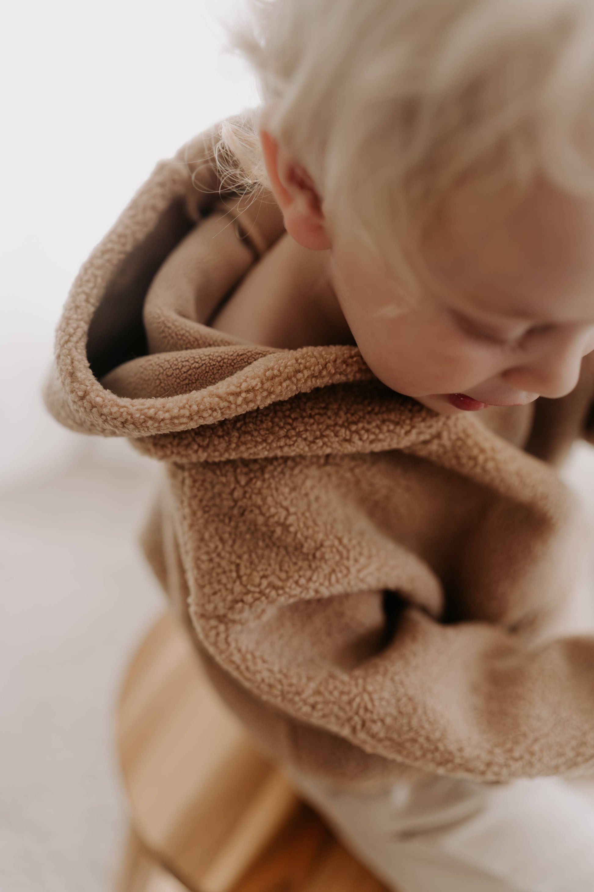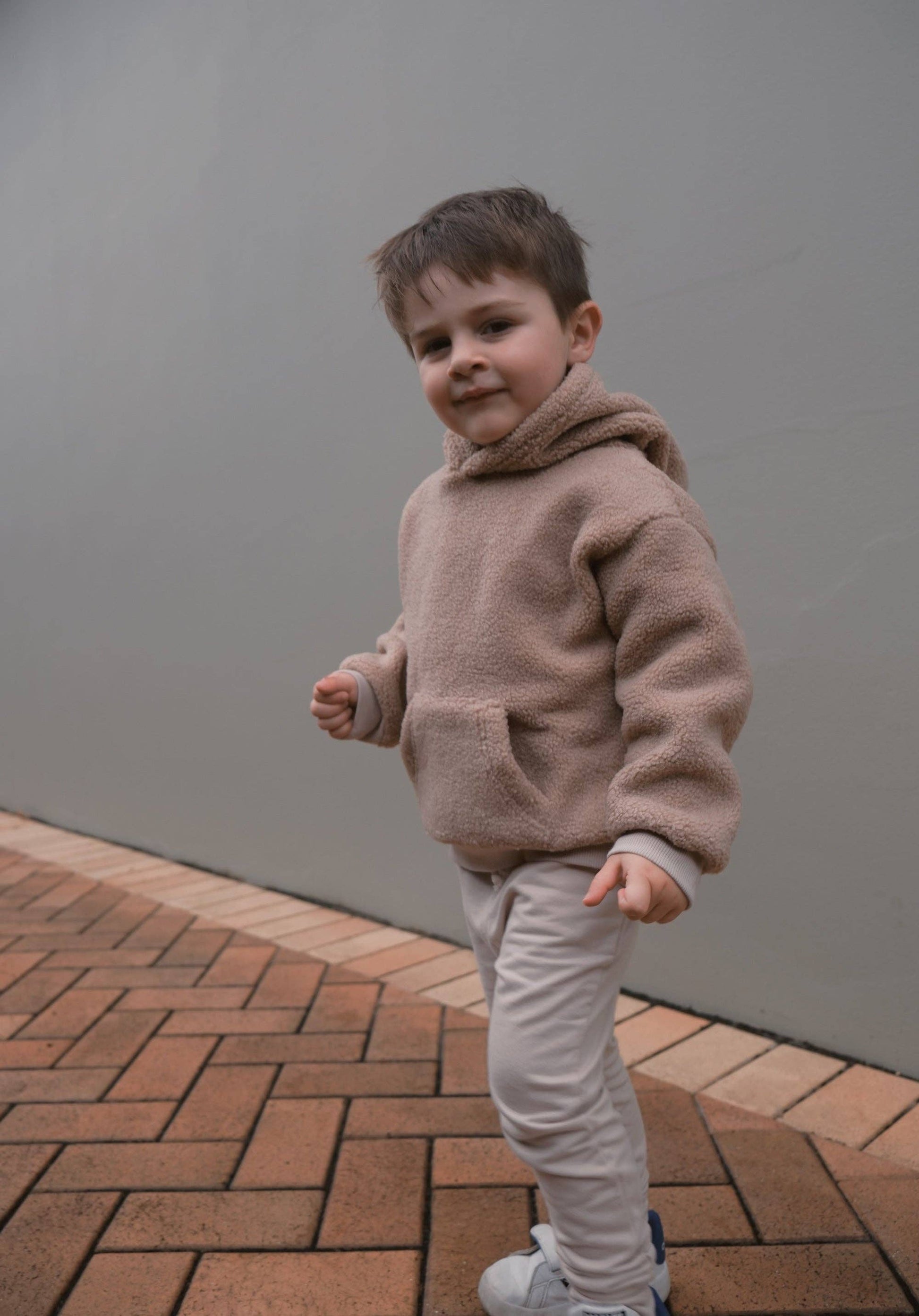 Introducing our Joey Hooded Jumper for kids, the epitome of cozy style for colder seasons. Made with soft bouclé fabric, it provides luxurious warmth and comfort. Fully lined for extra coziness, it's perfect for outdoor adventures or indoor lounging. With a gender-neutral design and sizes from 000 to 6, it's ideal for all children. Upgrade their winter wardrobe with our Joey Hooded Jumper. Relaxed oversized fit. Size Chart Size 000 - Chest 29cm Length 30cm Arm* 17cm Size 00 - Chest 32cm Length 32cm Arm* 19 cm Size 0 - Chest 33cm Length 34cm Arm* 23cm Size 1 - Chest 37cm Length 36cm Arm* 26cm Size 2 - Chest 38cm Length 38cm Arm* 27cm Size 3 - Chest 39cm Length 40cm Arm* 28cm Size 4 - Chest 40cm Length 41cm Arm* 31cm Size 5 - Chest 43cm Length 44cm Arm* 35cm Size 6 - Chest 44cm Length 46cm Arm* 38cm *Please note arm length is the inner arm length