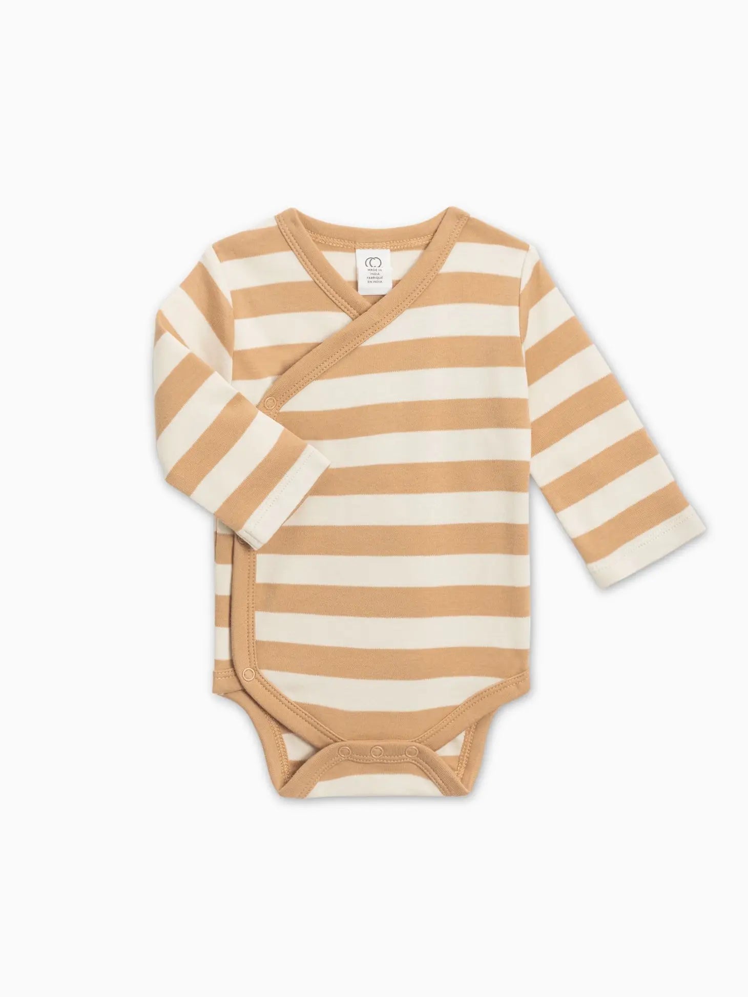 New Baby Kelly Kimono Bodysuit - Tan Ely Stripe