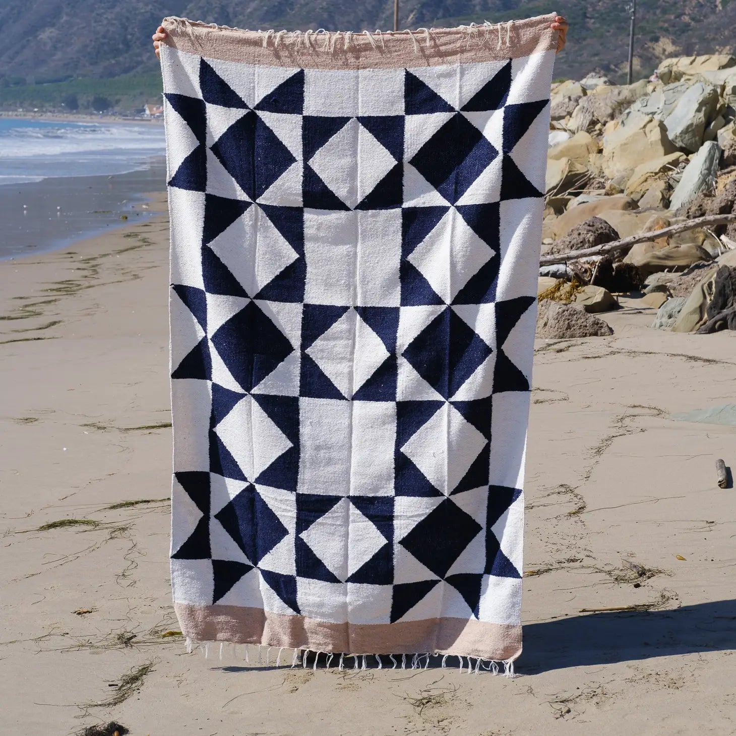 Stay warm or have a nap in the sun under the bright sun. This blanks is cozy and able to take a little wear. Spring is here! Head west with Sundream with the NEW "Out West" style from Sundream. Both beautiful and sustainable, these handmade heavyweight blankets are made of reclaimed fibers derived from 100% post-consumer materials containing a special blend of cotton, acrylic, and polyester. The Tan & Cream design is designed to be your go-to throw - perfect for a home accent throw to cuddle up with & rugged enough for your weekend adventures up the coast! These are tightly woven throws can double as a rug! Designed in California, Artisan made in Mexico. Natural Base Tan design Measures 83 x 52 3.5lb Mexican Blanket, Beach Blanket, Decor Blanket, Picnic Blanket, Outdoor Blanket, Saddle Blanket, Woven Blanket, Sustainably Made Throw Blanket, Turkish Towel, Up-cycled Material, Vintage Style, Neutral Color Blanket, Trending on Faire, Trending Spring, Trending Style, Western, Western Decor, Farm, Neutral Color Palette, Serape, Baja Blanket, Tan Blanket, Sun, Tapestry, Western blanket