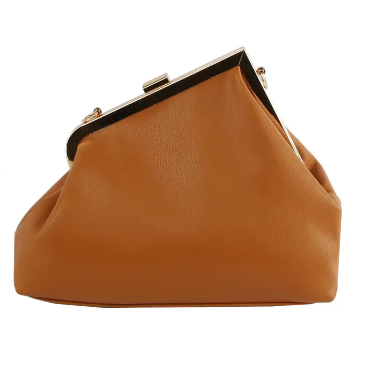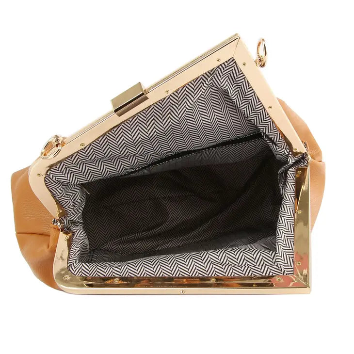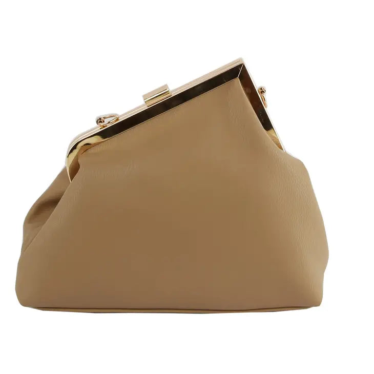 Unique design, crossbody gold hardware, This light beige clutch bag will go with any outfit as a trendy handbag for a casual outing or add the peal chain for instant glamor and ready for a formal event.